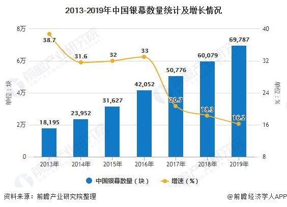随着我国影院数量规模的持续提升,我国电影院银幕总数量也在不断增长,截至到2019年底,全国银幕数量达到69787块,全年新增银幕9708块。但从增速来看,与影院数量增速类似,近年来,我国银幕数量增速呈现下降趋势。