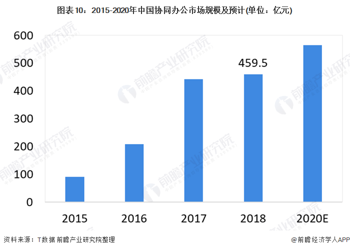 但前瞻认为,在我国中小企业数量庞大的背景下,5G时代的到来,先进技术将颠覆过往,有望将生产控制、工作协同线上化,企业需要智慧管理组织催生的行业需求前景广阔。预计2020年中国协同办公市场规模将突破500亿元,接近600亿元的水平。