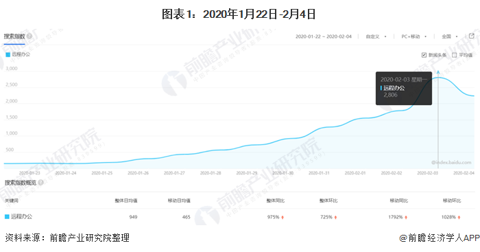 为加强新型冠状病毒感染的肺炎疫情防控工作,有效减少人员聚集,阻断疫情传播,国务院颁布了春节假期延长至2020年2月2日的通知,随后不同省市政府部门根据当地的疫情形势出台了符合当地情况的假期延长通知。在延迟复工的规定下,不少企业采取了“远程办公”的方法以降低无法正常复工带来的损失。“远程办公”这一话题瞬间引发全国关注。根据百度搜索指数显示,2020年1月22日-2月4日“远程办公”这一关键词在2月3日百度搜索热度达到顶峰,整体同比上升了975%!