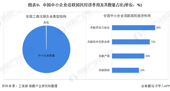 结合工信部公开披露的统计数据显示,截止到2018年底,我国中小企业的数量已超过3000万家,个体工商户数量超过7000万户,合计贡献了全国50%以上的税收,60%以上的GDP,70%以上的技术创新成果和80%以上的劳动力就业。
