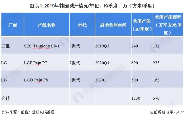 韩国面板产业也因受到中国面板产业快速崛起的影响而出现了利润下降等问题,因此,作为韩国最大的两家面板厂商三星和LG近年来也相继减产,其中在2019年更是提出将会加快退出LCD市场转战OLED市场,预计在2020年每月减少产能面积超过500万平方米。