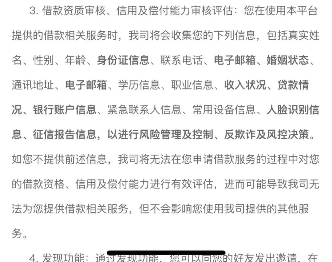 李亚指出,按照规定,金融借贷类APP最小(必要)权限范围仅有存储权限一项;且当收集的个人信息超出服务类型的最少信息时,超出部分的个人信息,App 应逐项征得用户明示同意。