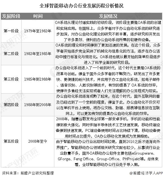 OA办公向智能化移动办公的发展共经历五个阶段: