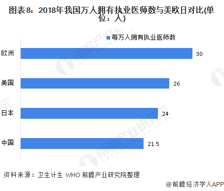 根据《2018年我国卫生健康事业发展统计公报》,截止2018年,全国执业医师总人数为301.04万人,平均“每万人拥有执业医师数”为21.5人。而根据WHO的统计,美国的这一数字为26人,日本为24人,欧洲国家多在30人以上。也就是说,即便不考虑新冠病毒疫情导致的短期激增需求,我国的医疗服务供给仍然是相对不足的。