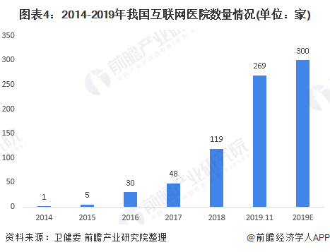 在市场需求攀升和政策利好频出的双轮驱动下,我国互联网医疗行业呈现跨越式发展。一方面,互联网医院数量大幅度增加。根据卫健委数据,截至2019年11月,我国已建成互联网医院数量达到269家,预计全年将达到300家。