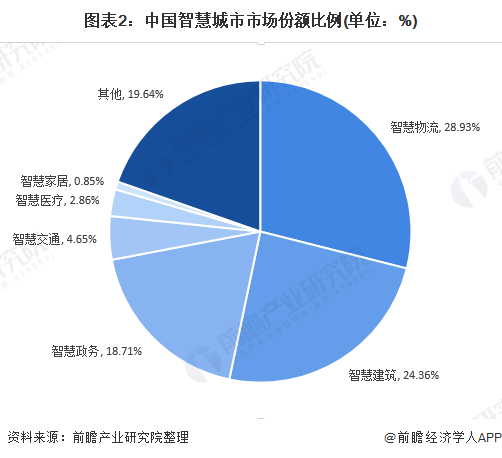 中国智慧城市市场规模在最近几年均保持了30%以上的增长。在中国的智慧城市试点项目中,智慧物流、智慧建筑、智慧政务领域占据了较大的市场份额,前瞻预测随着“银发经济”的发展,智慧医疗和智慧家居将成为下一轮高速发展的着力点。