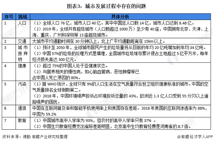 全球城市化的进程依然以不可阻挡的趋势向前推进,到2050年,接近70%的世界人口将生活在城市。在人口不断向城市涌入的过程中,人口密集引起的交通资源、医疗资源和教育资源稀缺成为最大的问题,还有人口引起的环保问题。中国的人口数量排名世界第一,医疗、教育、交通等技术不仅落后于发达国家,而且地域之间差异巨大。