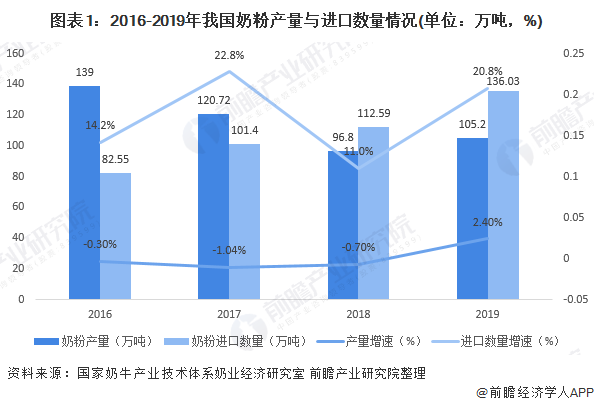 奶粉进口量与国内产量差距拉大,进口增速超20%