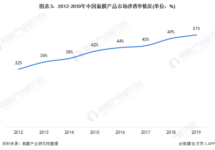 近年来,在“颜值经济”的驱动下,我国面膜产品的市场渗透率逐年提升,面膜消费群体逐渐扩大,2019年,我国面膜产品的市场渗透率约为51%。下面将带你了解我国面膜市场发展现状及未来发展趋势。