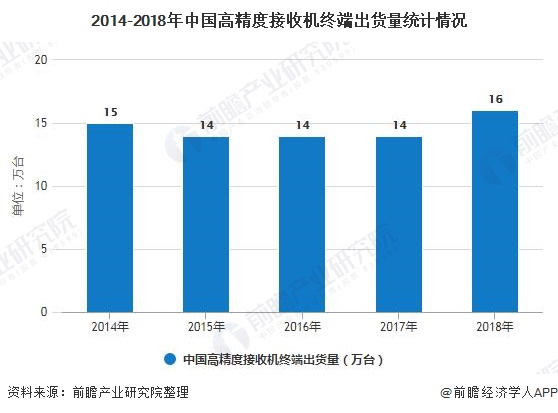 2016年国内高精度接收机出货量在14万台/套左右,其中国产高精度接收机约占50%;2017年国内专业高精度接收机终端出货量在14万套,国产高精度接收机销量约占50%;2018年高精度市场持续发展,国内专业高精度接收机终端出货量在16万台(套)左右,国产高精度接收机销量约占50%。