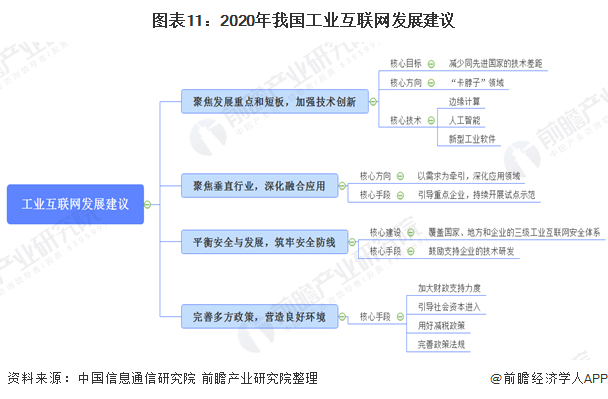 根据《工业互联网产业经济发展报告(2020 年)》,我国工业互联网的主要建议分为四大板块,分别是聚焦重点和短板、聚焦垂直行业、平衡安全与生产和完善多方政策。