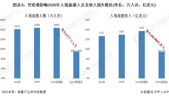 2003年全国入境旅游人数9166. 21万人次,在部分省市受冲击不大的情况下,全国入境总量仍比 2002年下降6. 38%。如今,在全国覆盖的一级响应和世界卫生组织(WHO)认定的双重叠加下,将对入境游特别是外国游客信心造成重大影响,上半年取消来华旅游的人数会大幅升高。预测2020全年入境旅游人数将降至9000万至1亿人次左右,同比2019年下降约30%-35%。入境旅游收入损失预计在350至400亿美元左右。