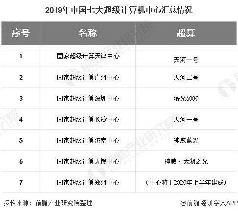 2、截至2019年中国国家超级计算中心共有七家