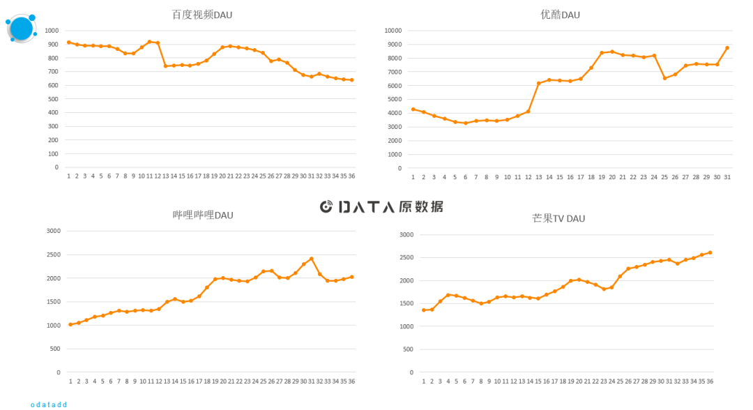 图表5 部分视频网站月度平均DAU数据变化趋势
