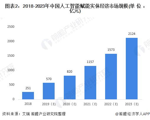 近几年,人工智能技术在实体经济中寻找落地应用场景成为核心要义,据艾瑞资料库数据显示,2018年中国人工智能赋能实体经济的市场规模达到251亿元,赋能价值有望在2021年突破千亿。人工智能技术与传统行业经营模式及业务流程产生实质性融合,智能经济时代的全新产业版图初步显现。