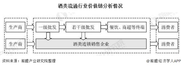 酒类流通行业的价值链条包括其上游生产商、中间环节即酒类流通企业、下游环节即消费者三大主体。酒类生产商在酒类流通行业处于优势地位,因此在行业价值链中生产商所占利润较高;