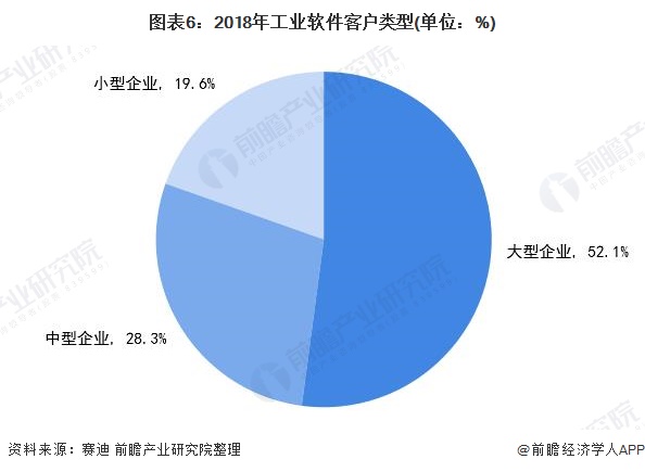 从客户结构来看,目前工业软件客户主要是大型企业,投资占比占据一半市场份额。中型企业和小型企业投资占比分别为28.3%和19.6%,中小型企业需求仍需进一步挖掘。