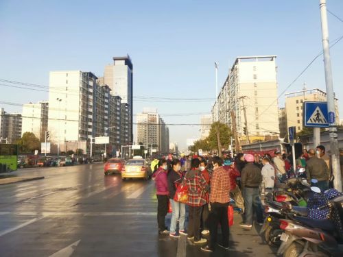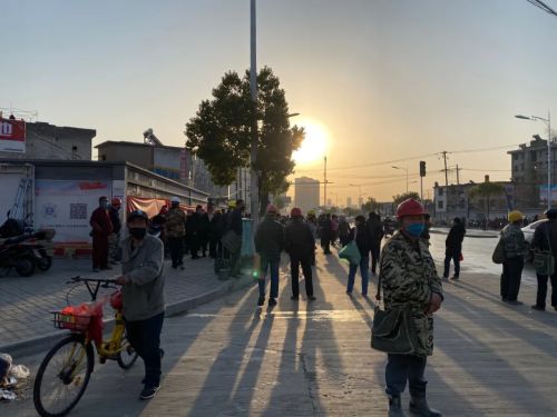 天已大亮,依旧有不少临工滞留在站塘路