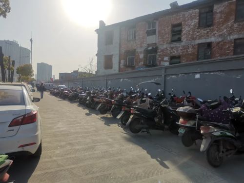 站塘路一边停满了临工的电动车,一墙之隔便是他们中不少人的居住地