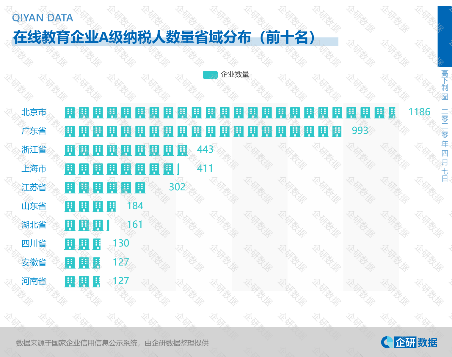 - 5 | 在线教育产业专题数据库国税A级纳税人省域分布情况(截止2020年03月)