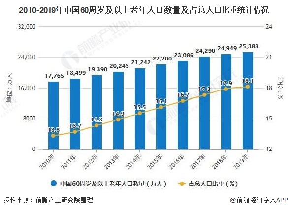 近十年来,我国人口老龄化程度快速上升。据国家统计局发布的《2019年国民经济和社会发展统计公报》显示,截至2019年底,全国60周岁及以上老年人口25388万人,占总人口的18.1%,其中65周岁及以上老年人口17603万人,占总人口的12.6%。人口老龄化程度的逐年增加,使得养老产业快速布局,而伴随着人工智能以及互联网等科技的发展,智慧健康养老的市场需求也开始逐渐增加。