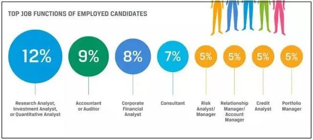 图源:CFA协会官网由上,可以发现,CFA考生的职业主要是:研究分析师、投资分析师、量化分析师——12%;会计、审计——9%;企业金融分析师——8%咨询人员——7%;风险分析师/风险管理、投资关系经理/客户经理、信贷分析师、投资组合经理——5%;由此来看,过半的CFA考生工作都与金融核心职位直接相关。在这些职位里,CFA证书或有着重要的学习/加分意义。