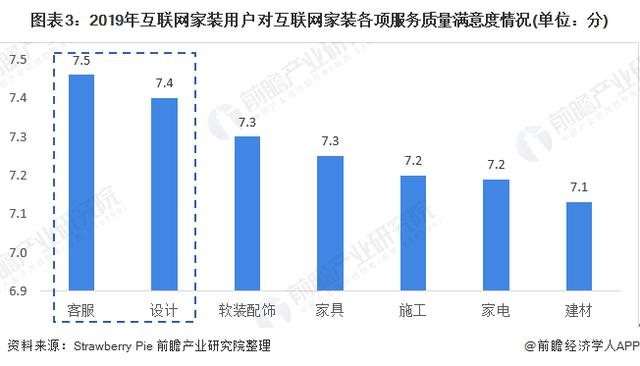 据调查,2019年我国互联网家装用户对互联网家装各项服务质量满意度均超过7分,其中客服和设计服务满意度分别为7.5分和7.4分。