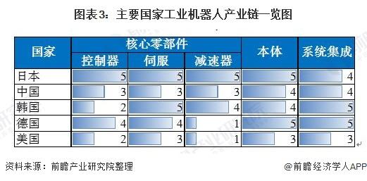 中国、日本、韩、美、德五国合计占全球 73%的需求,同时也是主要的工业机器人制造大国。中国具备核心零部件、本体、系统集成的完整产业链。中国和日、韩国都是具备完整产业链的国家。美国和德国缺乏减速器零部件供应商。