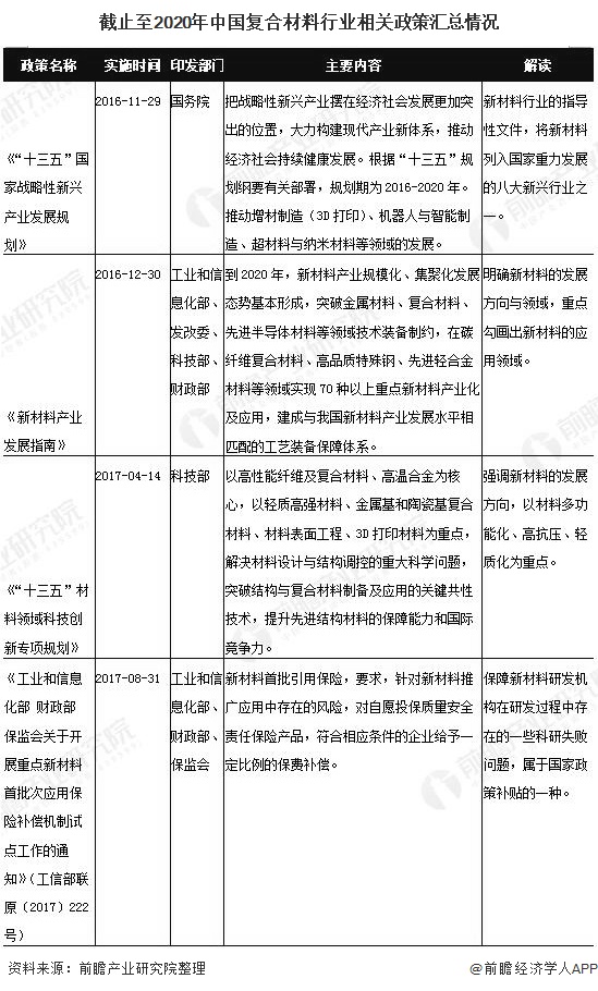 更多数据来源及分析请参考于前瞻产业研究院《中国复合材料行业发展前景预测与投资战略规划分析报告》,同时前瞻产业研究院提供产业大数据、产业规划、产业申报、产业园区规划、产业招商引资等解决方案。