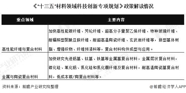2、复合材料领域政策频出 航天航空类、能源装备类和医用类是复合材料的重点应用领域