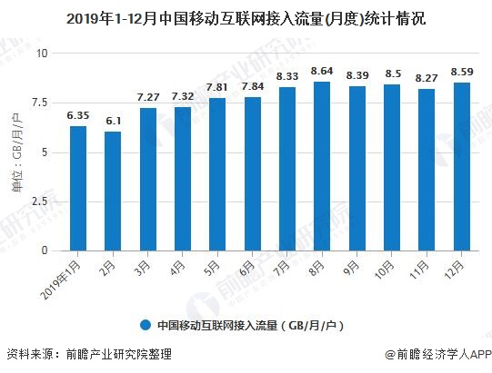 根据工信部发布的数据:2019年,移动互联网接入流量消费达1220亿GB,比上年增长71.6%,增速较上年收窄116.7百分点。2019年DOU达7.82GB,同比增长1.69倍。4G流量红利基本接近尾声:从环比数据看2019年移动互联网DOU环比增长较为乏力,目前DOU维持稳定在 8.5GB左右,4G流量红利基本接近尾声。