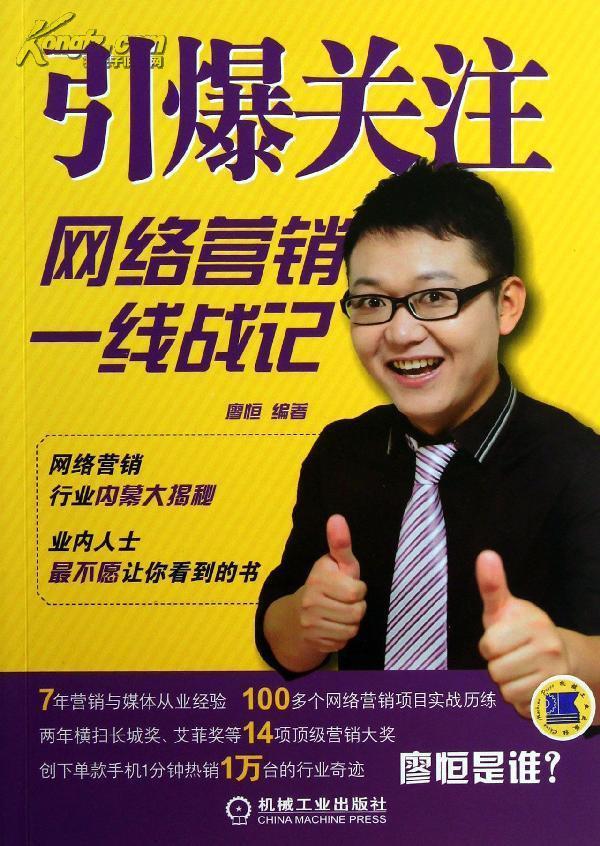 新时代营销人同时也是本书的作者——廖恒这样解释这本书,一个营销项目,要引爆关注,需要有一个极具传播力的核心传播源,一个极具传播力的核心传播点以及一个引爆平台。对于引爆平台,廖恒特别说明,在自媒体时代,只要是把传播源和点做到足够好,平台已没有那么重要。不过,好的传播平台还是更有利于引爆关注。比如,门户网站的引爆力自然是非同小可,当年“我爸是李刚”事件,虽然也先在论坛等平台有出现,但最终瞬间引爆关注还是因为门户网站的重点报道。“都是自己的经验总结,而且是毫无保留的呈现”。这是廖恒写这本书的宗旨。廖恒拥有7年网络营销实战经验,目前在联想手机从事网络营销工作,上百个网络营销项目的实战历练,曾创下单款手机1分钟热销1万台的行业奇迹,两年横扫长城奖、艾菲奖等14项顶级营销大奖。廖恒曾供职于搜狐网新闻中心,担任过《环球时报》特约记者,一线的媒体从业经验使其对媒体的理解更为深刻,在营销过程中对媒体的运用也更加娴熟。相信这样一位怀着赤诚之心的专业网络营销人,在写这本书的时候也是倾尽了自己的心血和这7年经验的浓缩。