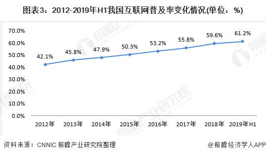 我国互联网普及率的提高和手机网民规模的扩大是网络媒体发展的有利因素。数据显示,2019年上半年,我国互联网普及率首次突破60%,达61.2%。