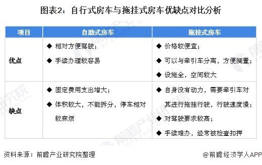 每种车型均有其各自的优缺点,如自行式房车对驾驶要求较低,手续办理较简易,但是费用支出相对较高,车型不能折叠拆分,停车相对较麻烦;而拖挂式房车有价格优势,且能与牵引车分离,方便搁置,空间大,但是对驾驶员的驾驶技术要求较高,手续较难办理。在房车市场上,两者受欢迎程度不相上下,2019年保有量分别为39%和35%。