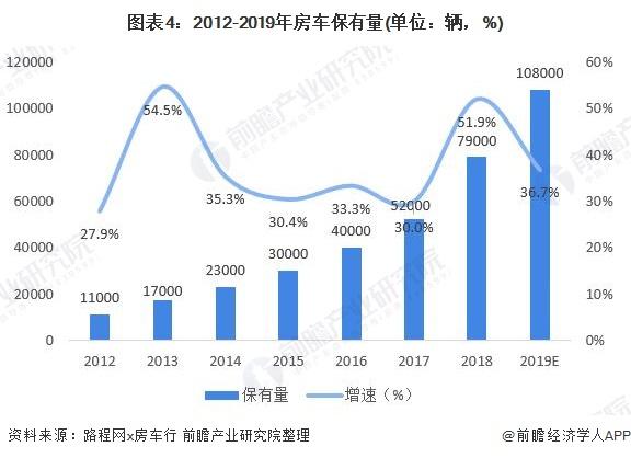 相比较于欧美国家而言,我国的房车起步比较晚,从2001年中国首辆自主知识产权的自行式房车下线后,我国的房车行业开始了摸索之路。但是随着近年来自驾游、自由行等新兴的旅游方式逐渐崛起,房车旅游作为一种能够自由调节旅游步伐、随时随地体验各地风土人情的另一种独特的新型旅游模式,也逐渐被年轻人接受,而房车市场也持续升温。路程网x房车行数据显示,2012-2019年,我国房车保有量飞速增长,2018年已经达到79000辆,2019年突破10万辆,年复合增长率高达38%。
