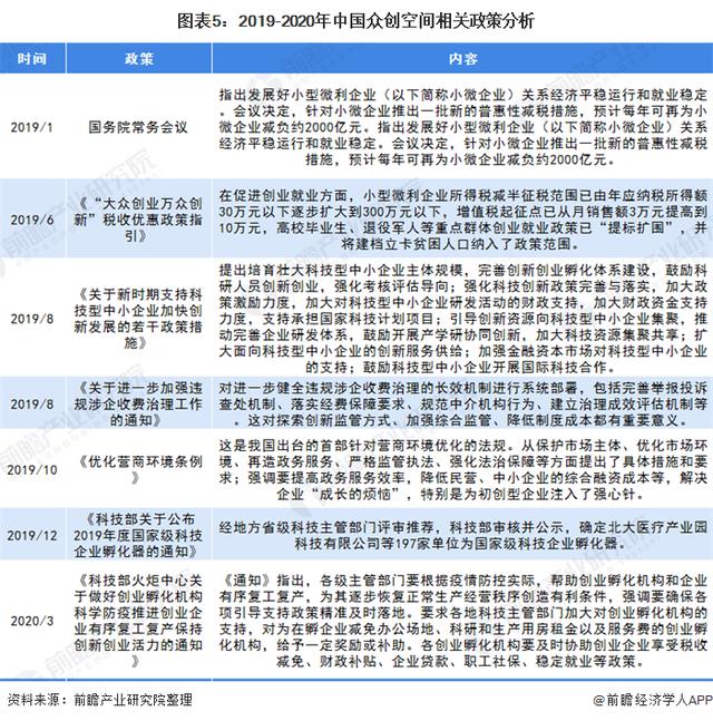 从众创空间的发展环境来看,我国众创空间的政策环境相对较好。2019年6月,税务局发布了新版《“大众创业万众创新”税收优惠政策指引》,进一步提高了对创新型企业的税收优惠,总的来看,有利于众创空间的发展。