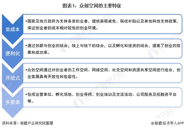 众创空间,主体是“众”,内容是“创”,载体是“空间”,即创新型孵化器。众创空间是“线上线下的自组织孵化器”,为创业企业提供专业、低廉的创业服务。众创空间的主要特征包括以下四点: