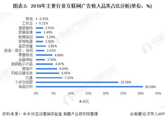 从2019年中国主要行业互联网广告收入品类占比情况来看,“食品饮料”及“个护及母婴”继续成为互联网广告市场收入最大的头两号品类,并且持续保持高速增长,其中“食品饮料”类收入增幅迅速。