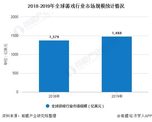 随着居民生活水平提高,对于生活娱乐类产业也得到快速提振,而游戏产业作为年轻一代最受欢迎的娱乐种类也得到飞速发展。根据权威数据调研公司Newzoo数据显示,2018-2019年,全球游戏市场呈现逐年增长态势。其中,2019年全球游戏市场规模达到1488亿美元,同比增增长7.9%。