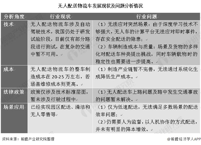 3、无人配送物流车处于试验阶段 政策和技术皆不完善