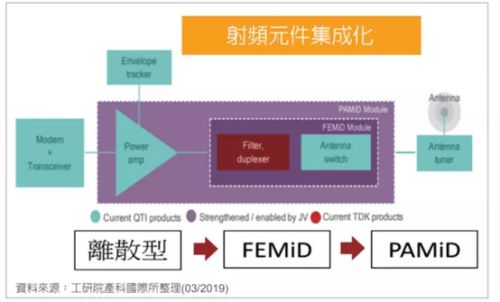 PAMiD(PA Module integratedduplexer),其整合了PA,滤波器,天线开关和双工器。