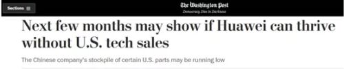 2019年10月7日,美国华盛顿邮报刊登了一篇文章《Next Few months may show if Huawei can thrive without U.S. techsales》