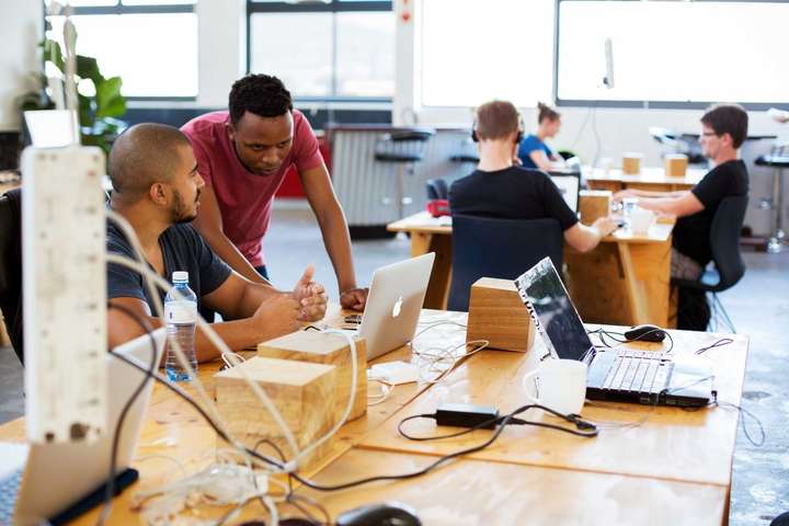 2016年6月9日,来自不同初创公司的员工在英国伦敦联合办公的集体节制医院中使用计算机工作。 莱昂内尔·德里迈斯/科比斯通过Getty Images