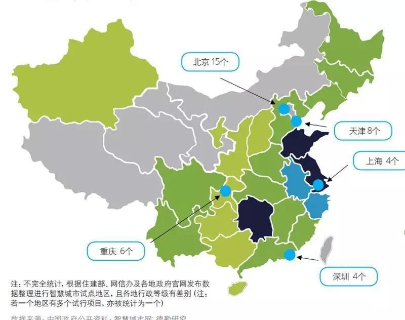 中国智慧城市的建设呈现因地制宜、 因城施策的发展局面;从区域分布来看呈现出由东部大城市向中西部地区城市推广的趋势, 即由点到面的趋势日益明显。
