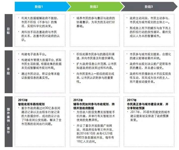 为了实现顺畅的市民参与, 可以通过“短、 中、 长” 期的三步走战略, 积极借鉴国外的发展经验, 借助大数据、 电子政务等科技手段的途径, 以技术为跳板, 最终实现“新型智慧城市” 中的市民参与, 创设良好的市民体验。