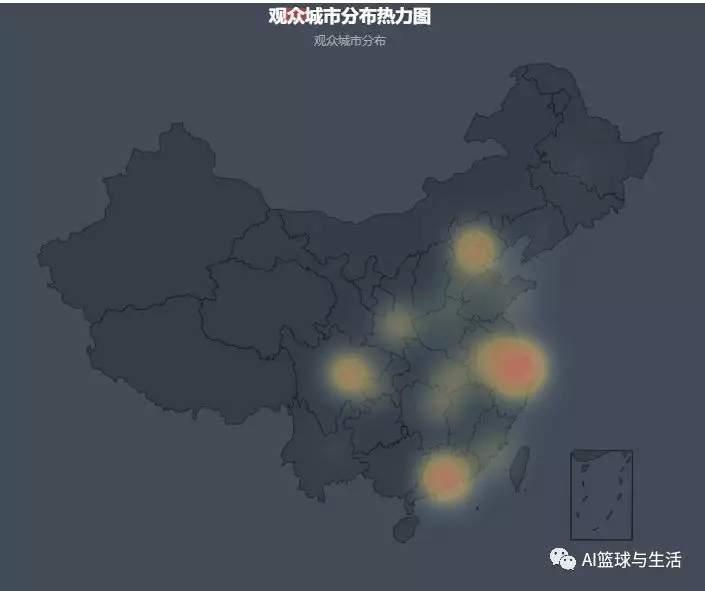 但是直方图的呈现并不总是那么的直观和易于理解,所以小编也采用地图的形式向大家展示主要看剧的观众分布在哪几个区域,