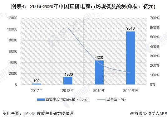 受疫情影响,餐饮、旅游等传统消费几乎停摆,而直播带货等“宅经济”则风生水起,据iiMedia数据显示,国内直播电商市场规模从2017年190亿元迅速增长至2019年的4338亿元,2020年预计规模将达9610亿元,同比增长122%。