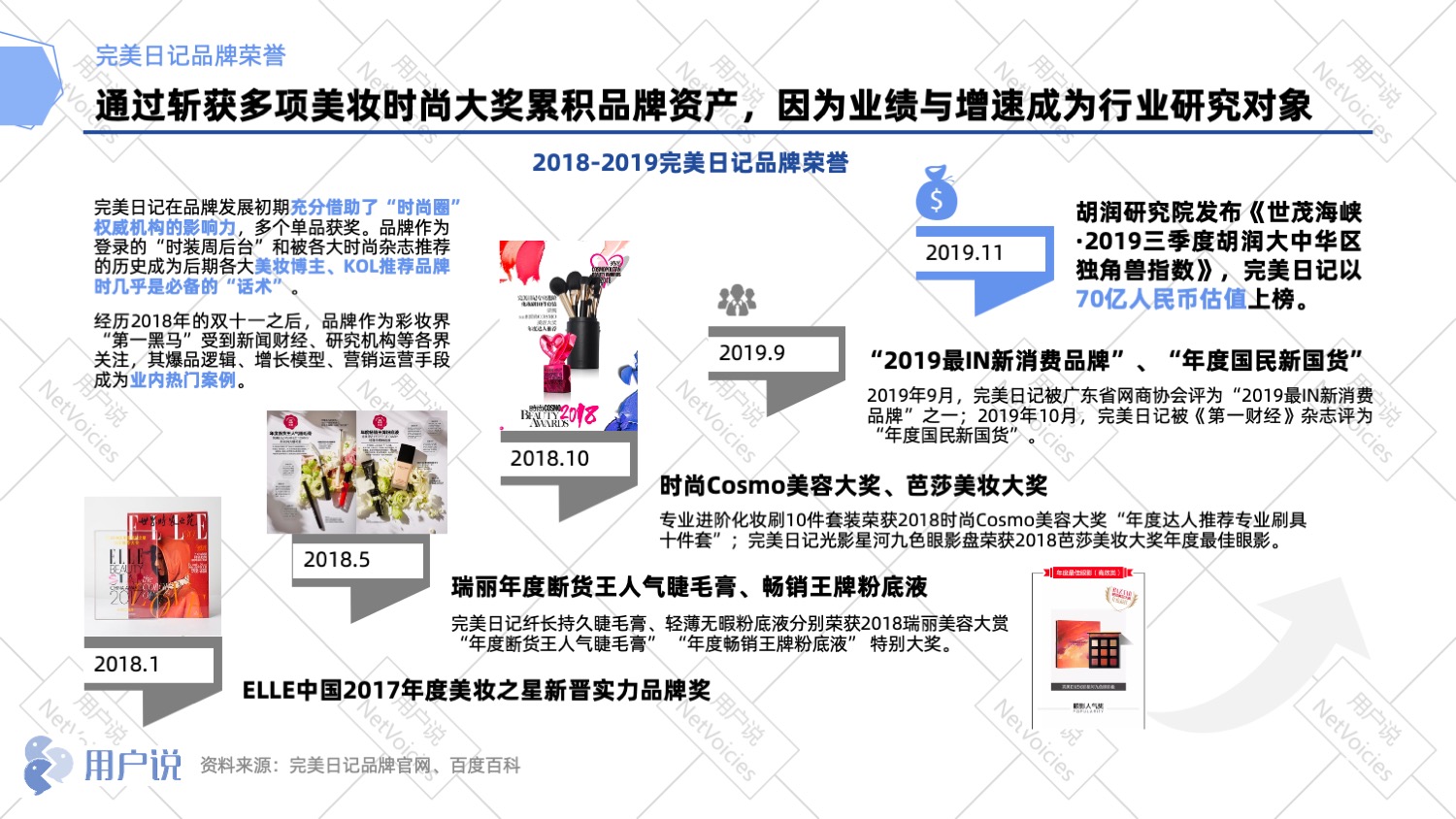 [size=1.2em]完美日记的成长速度另业内同仁们叹为观止的同时又充满了好奇。用户说团队对完美日记2017年成立至今42个月的互联网声量进行追踪,深度复盘其32个月的营销操作,从而挖掘其崛起背后的规律,总结可复用的方法论,为美妆进入者预测未来建立分析框架,从而实现前瞻判断。