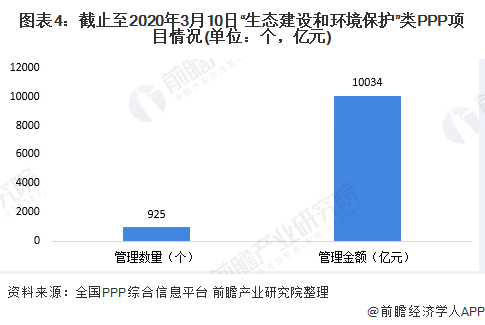 PPP(公私合营)模式是固废处理项目的主要运营模式之一。根据全国PPP综合信息平台项目管理库数据显示,截止至2020年3月10日,“生态建设和环境保护”类项目数量为925个,数量排名各类项目中第三名;项目金额为1万亿元,排名所有项目中第4名。可见,包括固废处理项目在内的生态环保在PPP项目中依然占据关键地位。