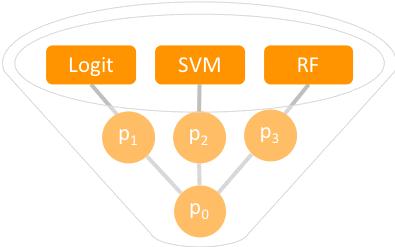 分别训练了三种ML算法(逻辑回归,支持向量机和随机森林),然后将它们组合在一起,如前面的流程图所示。集成方法在文献中称为”软投票”,因为它采用了不同模型的平均概率并将其用于客户分类(在前面的流程图中也可以看到)。